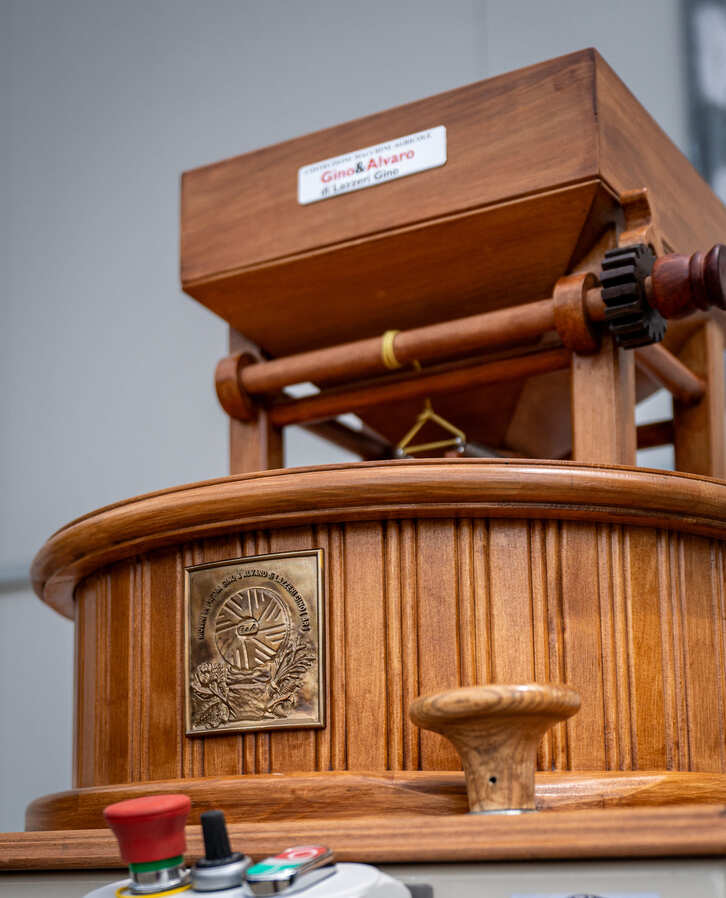 La rabbigliatura, effettuata a mano, garantisce un taglio preciso del prodotto e previene il surriscaldamento. La macinatura lenta è un’altra caratteristica distintiva dei nostri mulini: sebbene possa ridurre la quantità di produzione, assicura una qualità superiore, preservando tutte le proprietà organolettiche del prodotto finale.